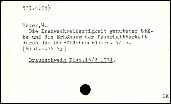 Die Drehwechselfestigkeit genuteter Stäbe und die Erhöhung der Dauerhaltbarkeit durch das Oberflächendrücken.