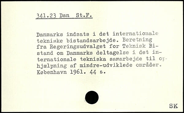 Danmarks indsats i det internationale tekniske “bistandsarbejde. Beretning fra Regeringsudvalget for Teknisk Bistand om Danmarks deltagelse i det internationale tekniska samarbejde til ophjælpning af mindre-udviklede områder.