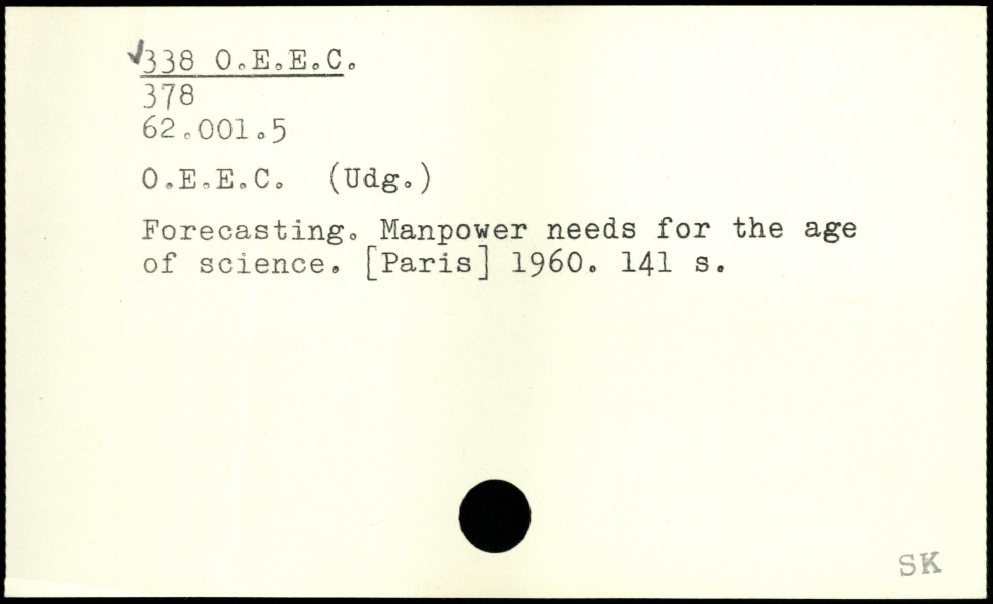 0.E,EoCo (Udg,) Forecastingo Manpower needs for the age of science