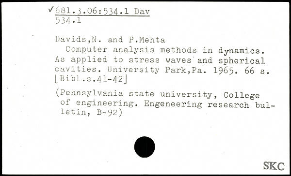 Computer analysis methods in dynamics. As applied to stress waves'and spherical cavities. University Park,Pa. 1965.