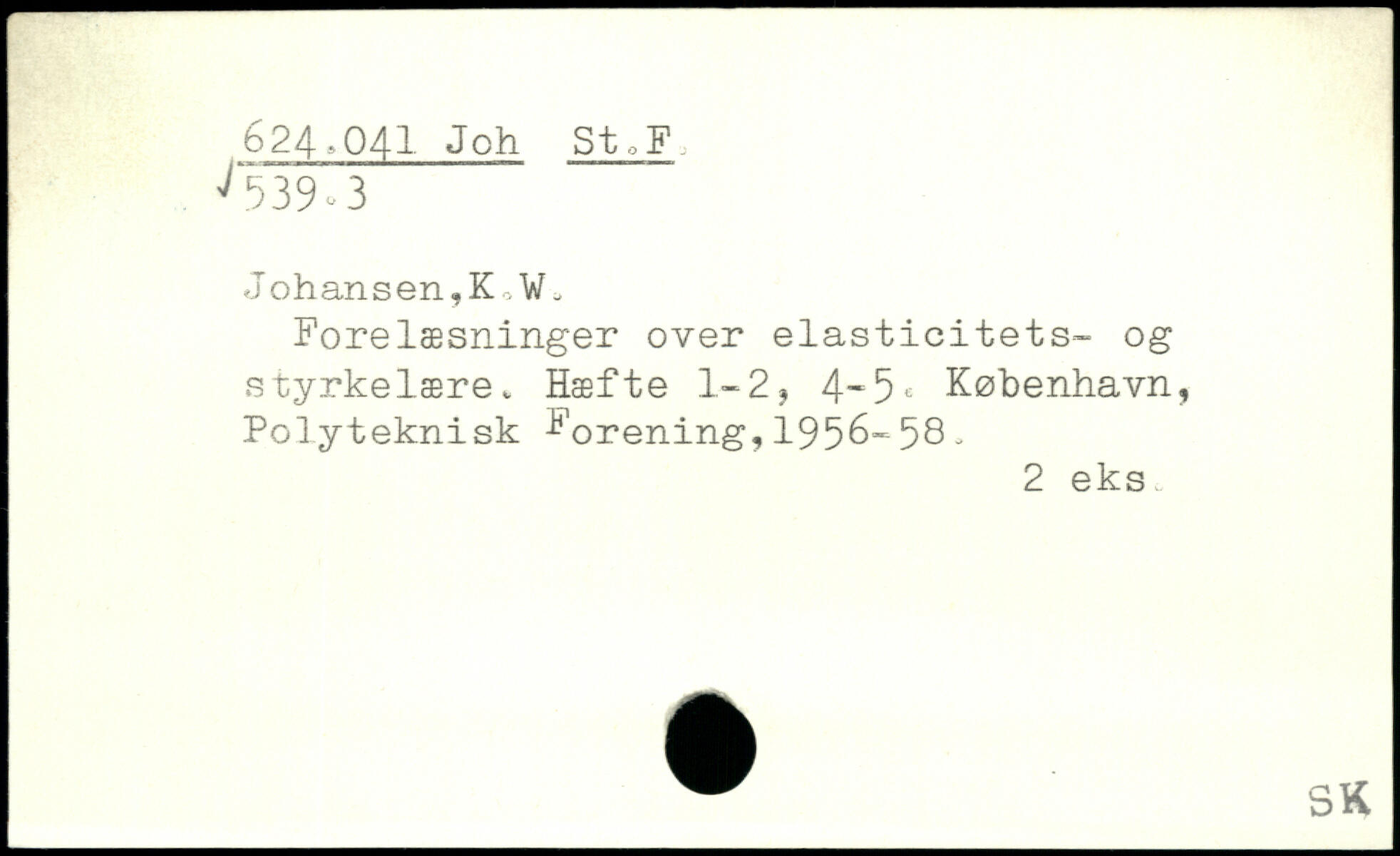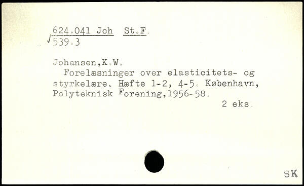 Forelæsninger over elasticitets- og s tyrkelære. Hæfte 1-2, 4-5. København, Polyteknisk Forening?1956-58 -