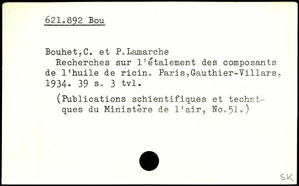 Recherches sur l’étalement des composants de l'huile de ricin.