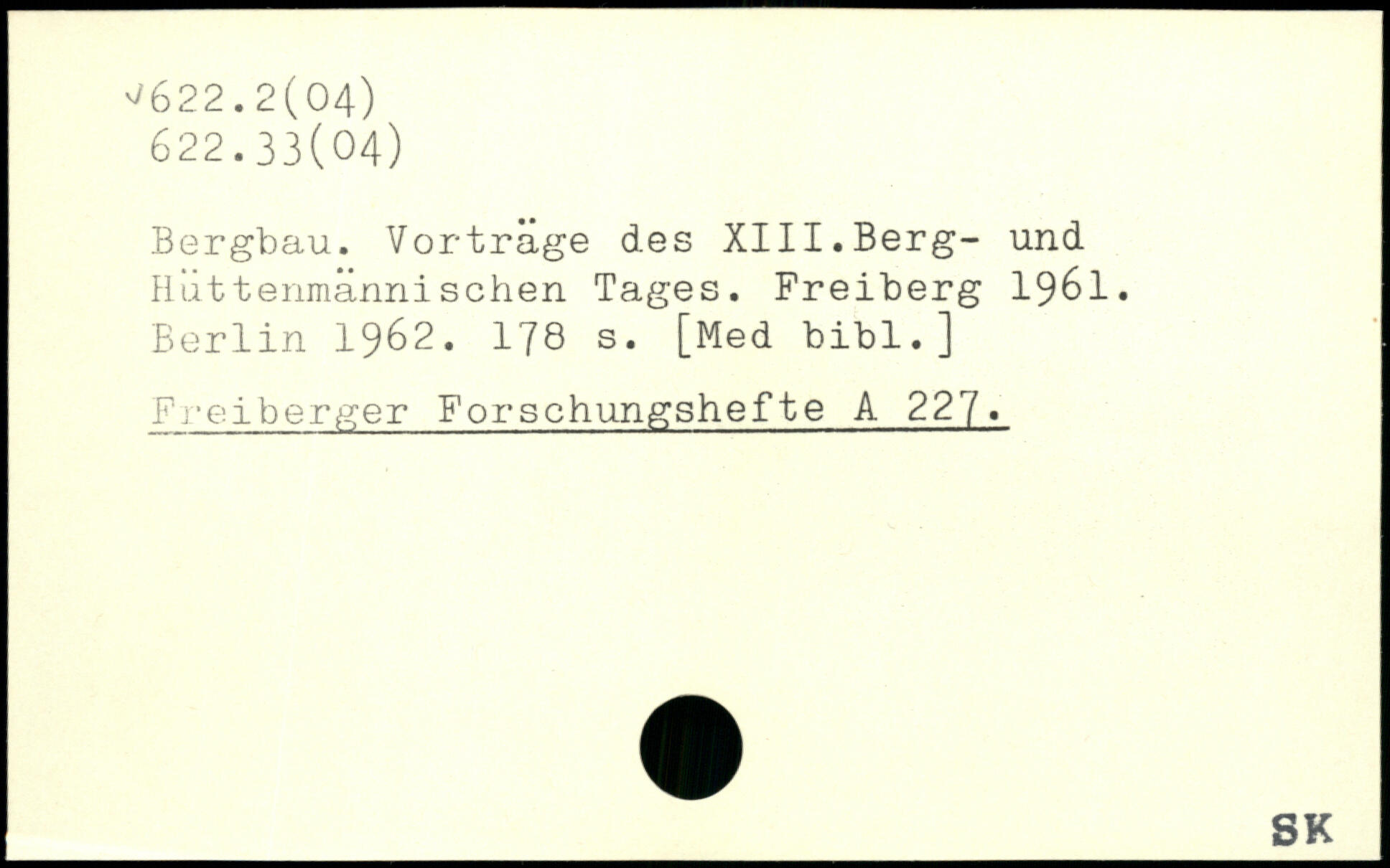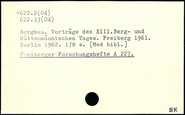 Bergbau. Vorträge des XIII.Berg- und Hüttenmännischen Tages. Freiberg 1961.