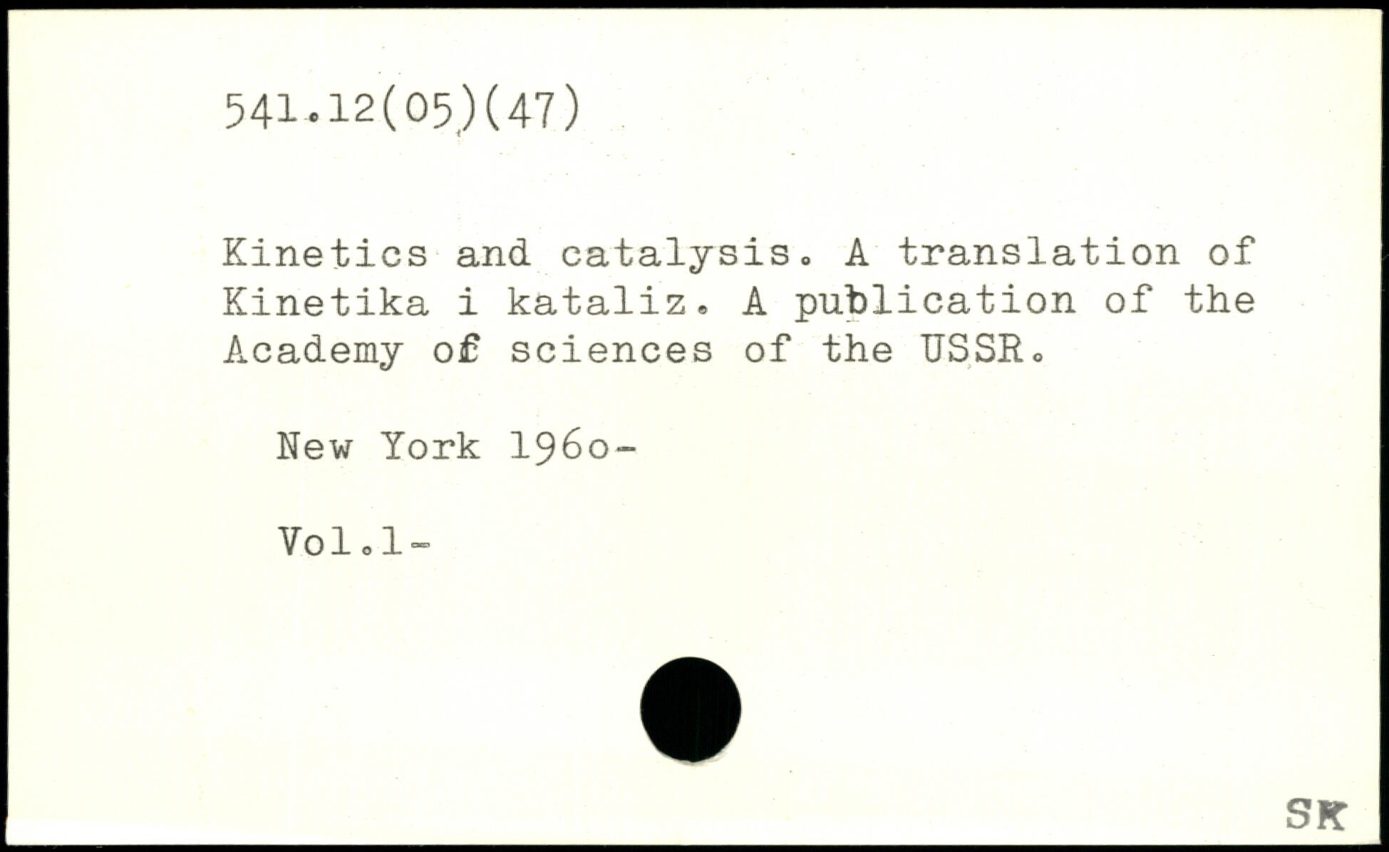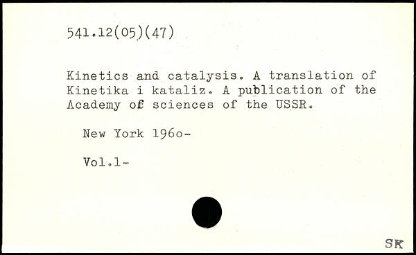 Kinetics and catalysis, A translation of Kinetika i kataliz. A publication of the Academy of sciences of the USSR