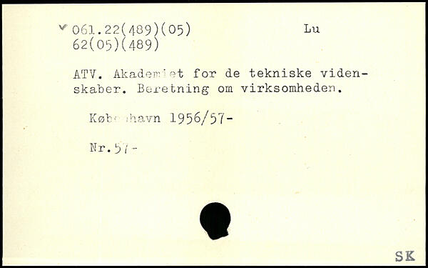 ATV. Akademiet for de tekniske videnskaber. Beretning om virksomheden. Købf ;havn 1956/57“ Nr.5 i -