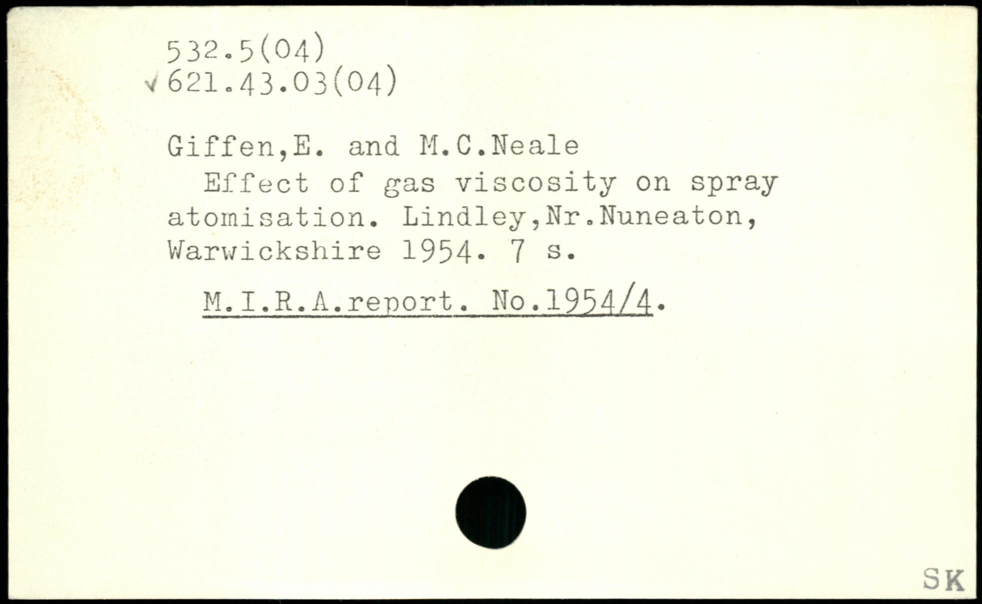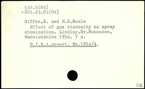 Effect of gas viscosity on spray atomisation. Lindley,Nr.Nuneaton, Warwickshire 1954.