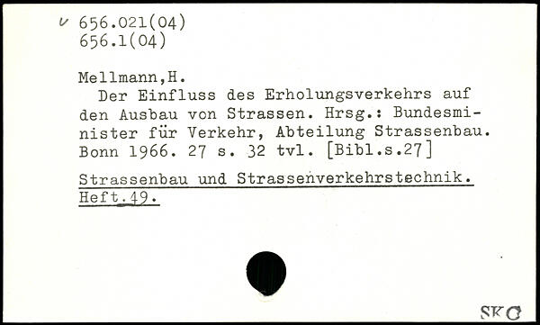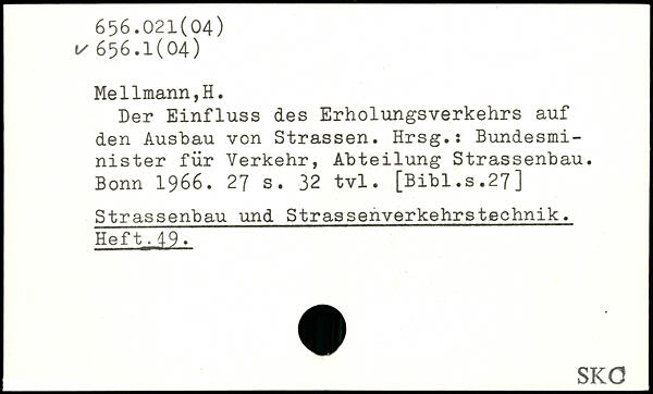 Der Einfluss des Erholungsverkehrs auf den Aushau von Strassen. Hrsg.: Bundesmi-nister für Verkehr, Abteilung Strassenbau. Bonn 1966.