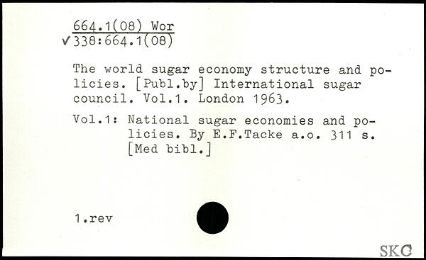 The world sugar economy structure and policies. [Publ.hy] International sugar council.