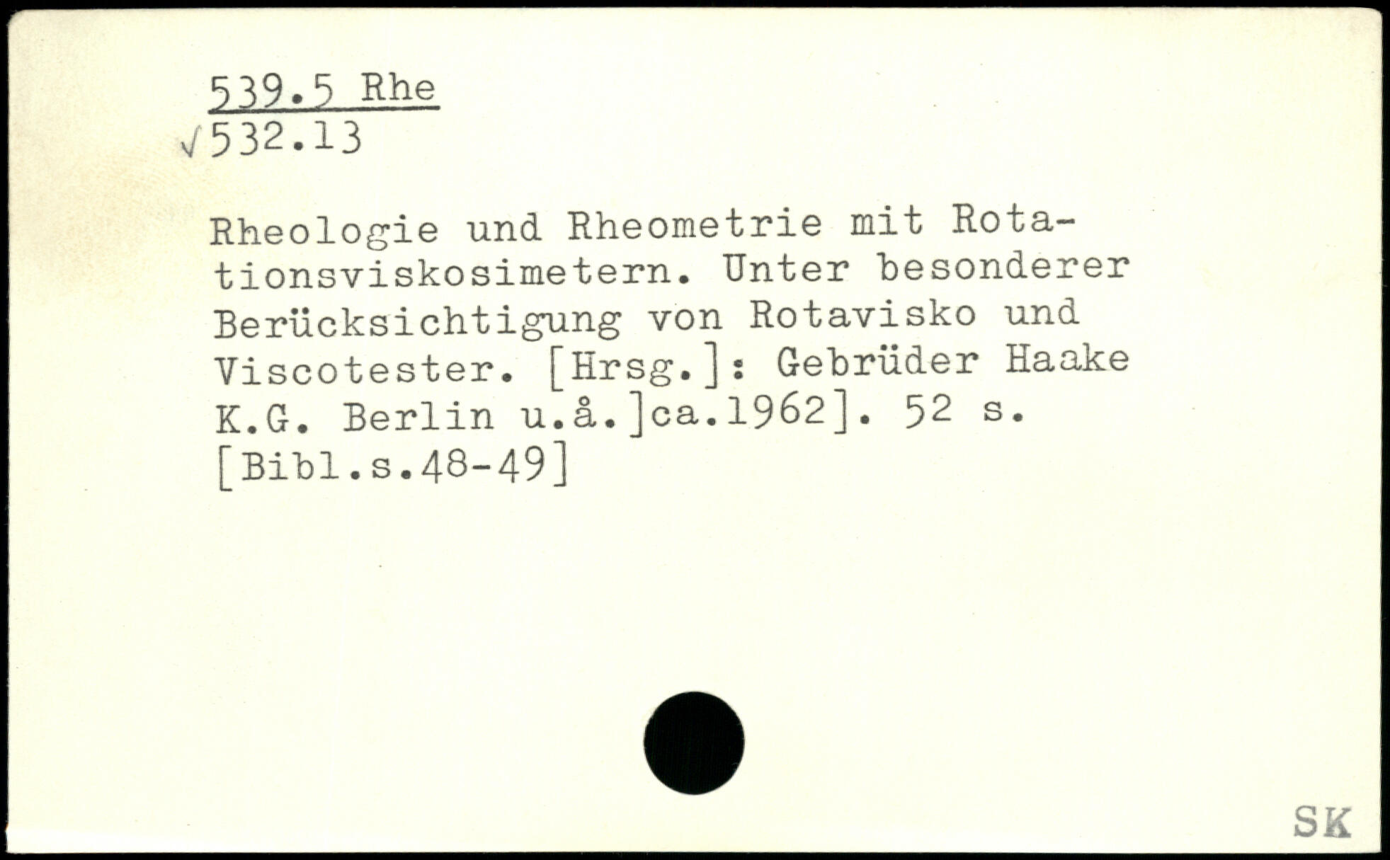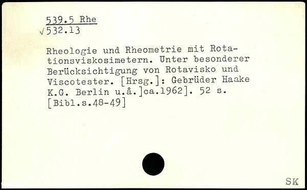 Rheologie und Rheometrie mit Rotationsviskosimetern. Unter besonderer Berücksichtigung von Rotavisko und Viscotester. [Hrsg.]: Gebrüder Haake K.G. Berlin u.a.]ca.1962].