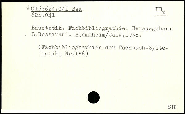 Baustatik, Fachbibliographie, Herausgeber: L,Rossipaulo Stammheim/Calw,1958=