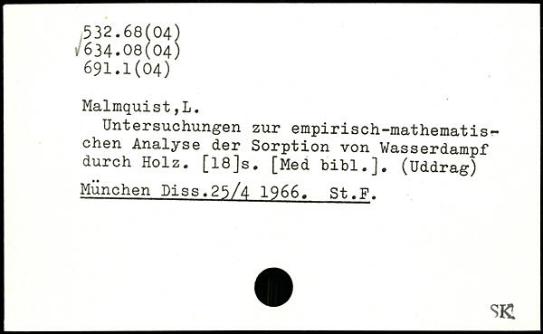 Untersuchungen zur empirisch-mathematischen Analyse der Sorption von Wasserdampf durch Holz. [I8]s. [Med bibl.]. (Uddrag) München Piss.25/4 1966. St.F.