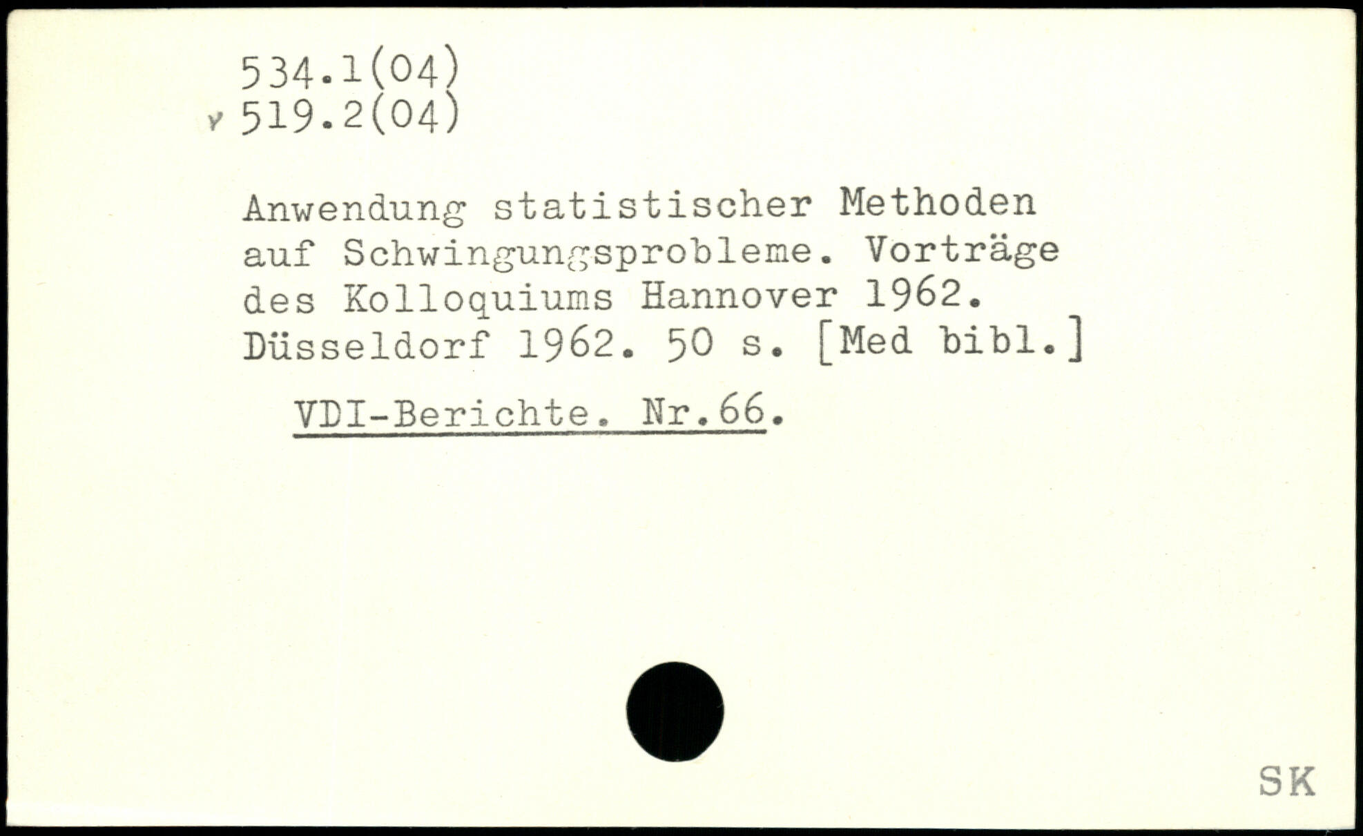 Anwendung statistischer Methoden auf Schwingungsprobleme. Vorträge des Kolloquiums