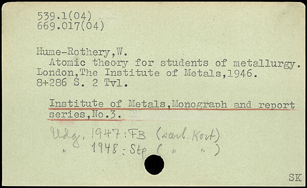 Hume-Ho thery, W. Atomic theory for students of metallurgy.