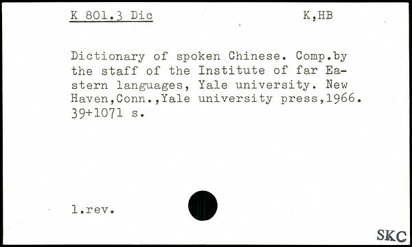 Dictionary of spoken Chinese. Comp.hy the staff of the Institute of far Eastern languages, Yale university.