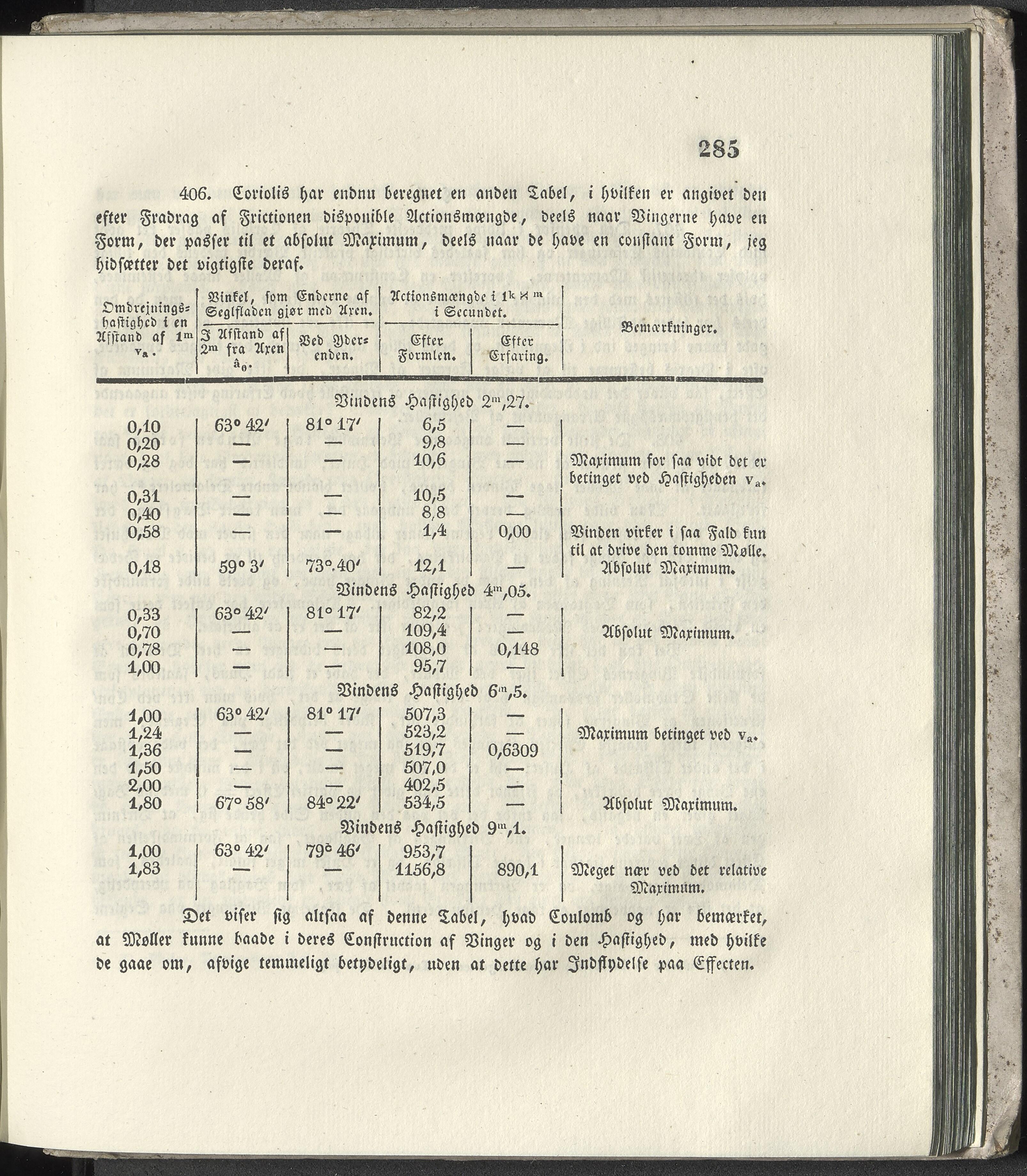 406. Coriolis har endnu beregnet en anden Tabel, i hvilken er angivet den