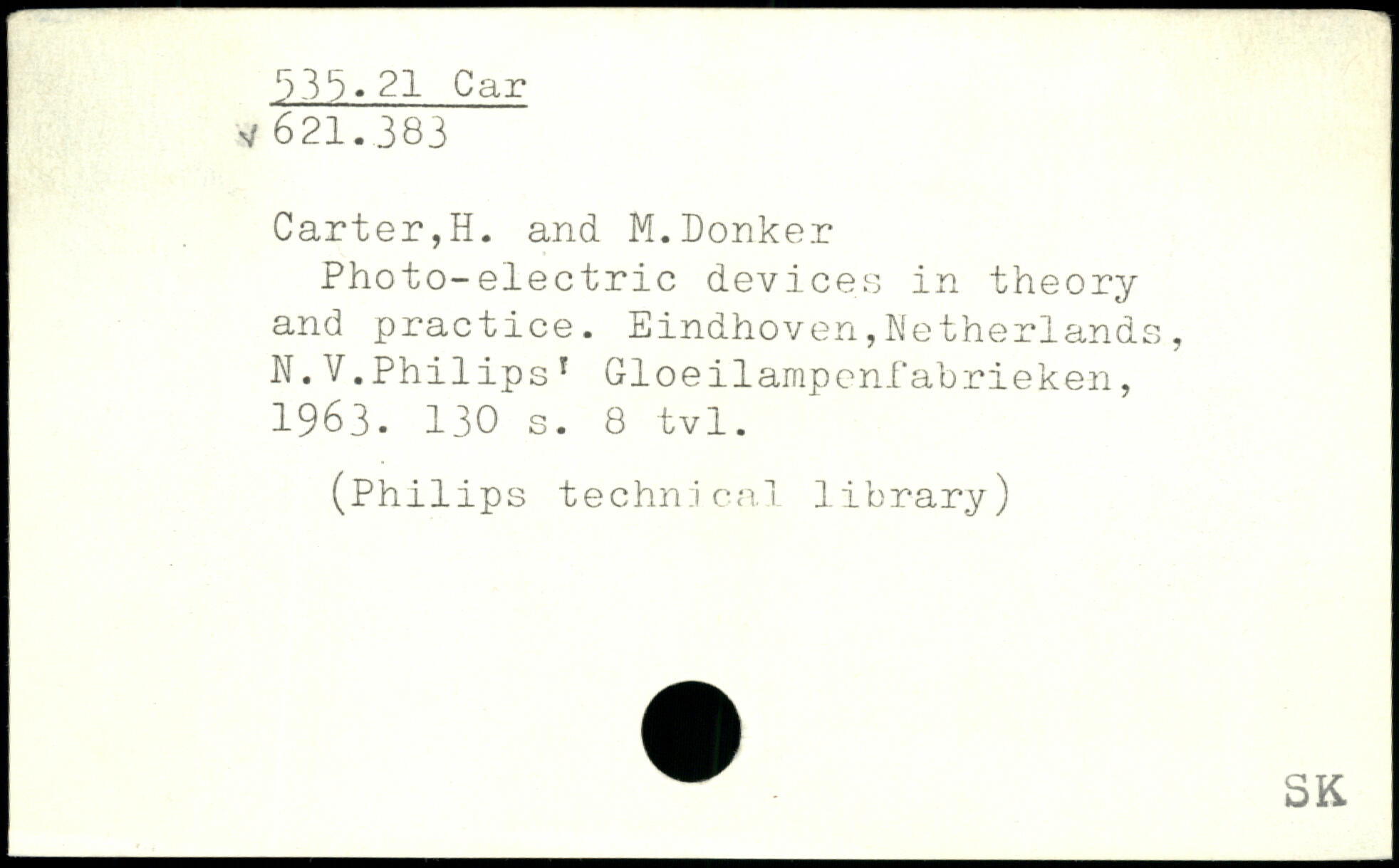 Photo-electric devices in theory and practice. Eindhoven,Netherlands, N.V.Philips 1 Gloeilampenfabrieken, 1963.