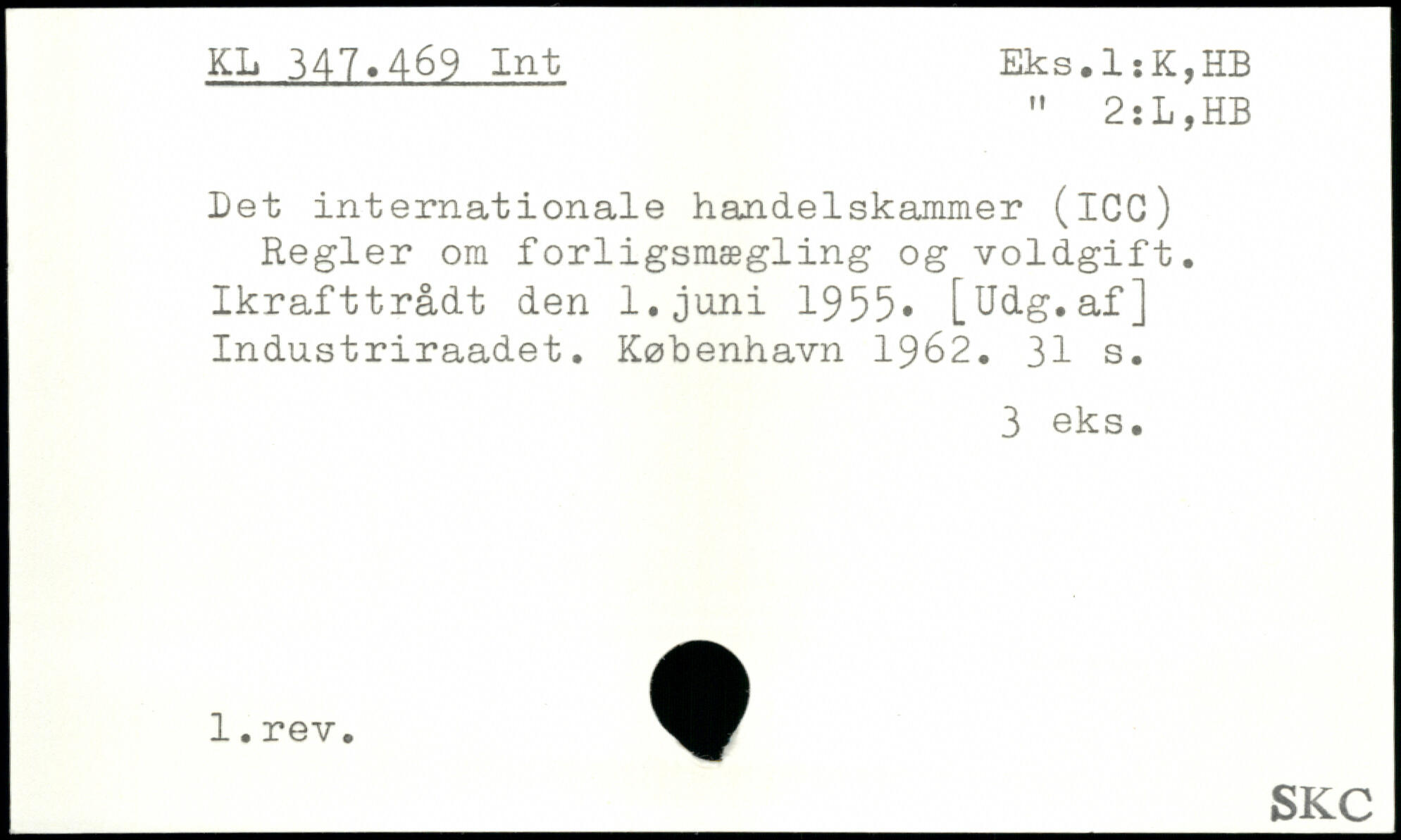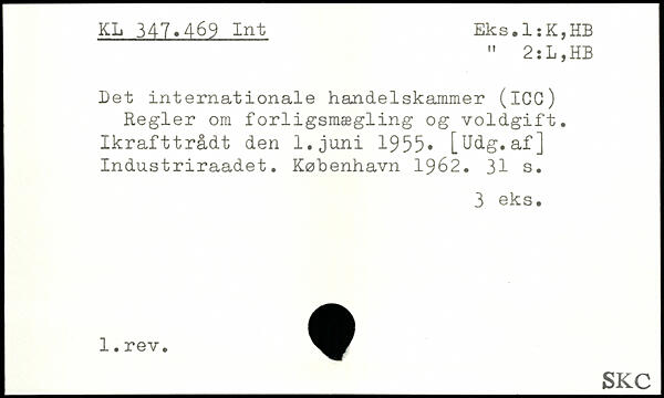 Det internationale handelskammer (ICC) Regler om forligsmægling og voldgift. Ikrafttrådt den l.juni 1955