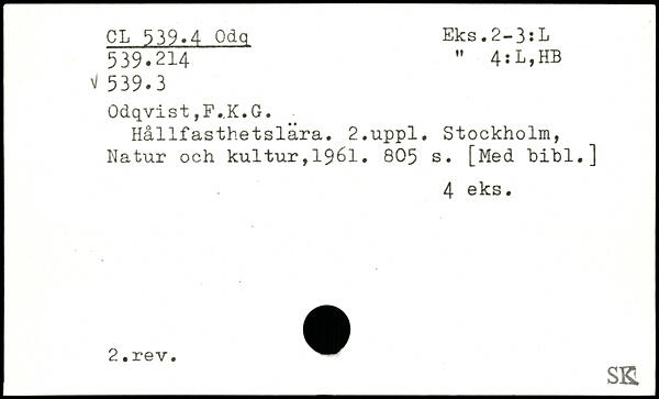 Odqvist ,F..K.G. Hållfasthetslära.