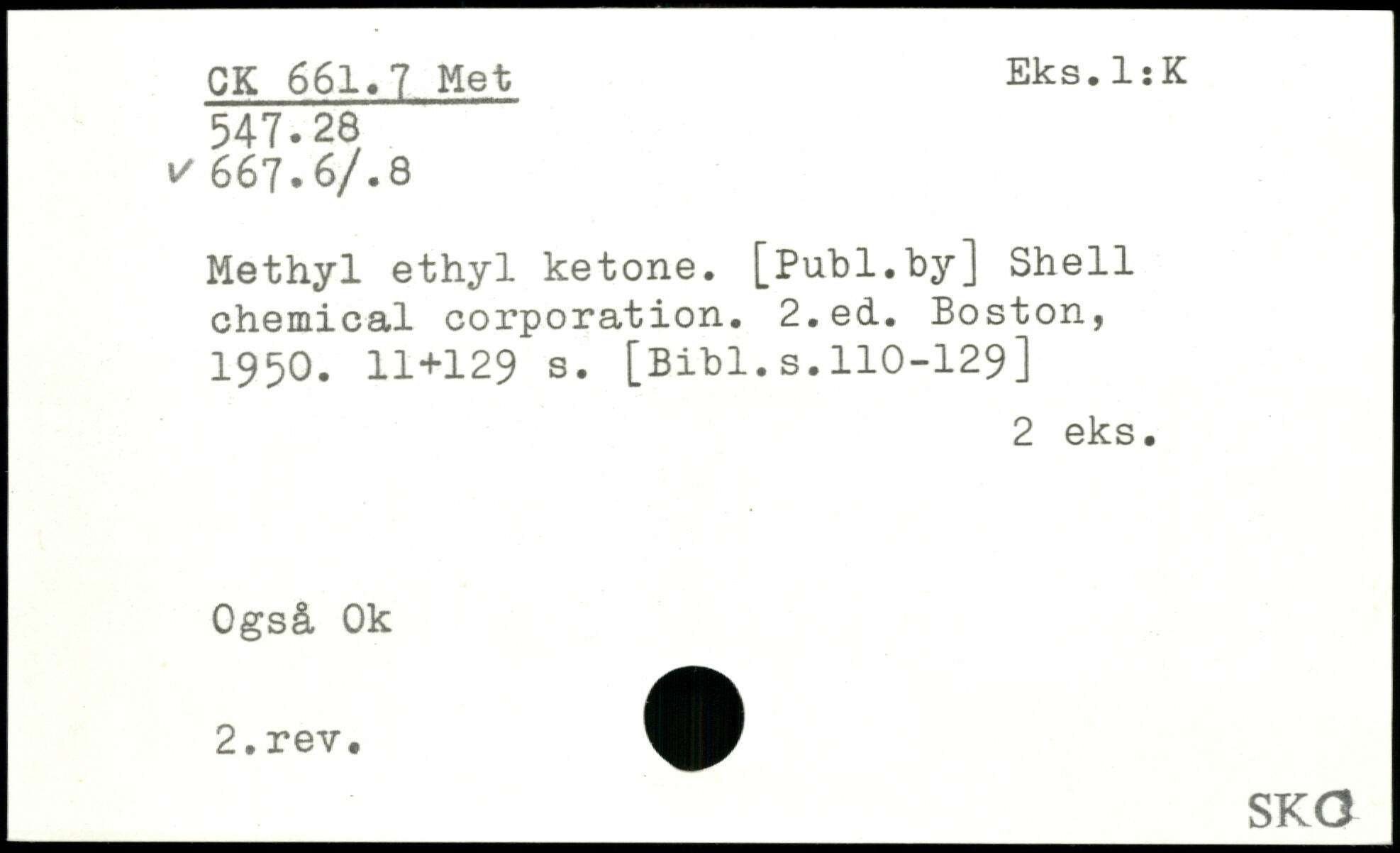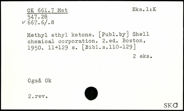 Methyl ethyl ketone. [Publ.hy] Shell chemical corporation.