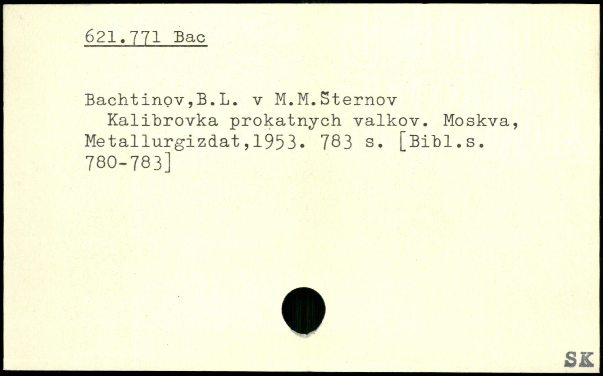Bachtinov,B.L. v M.M.Sternov Kalibrovka prokatnych valkov.