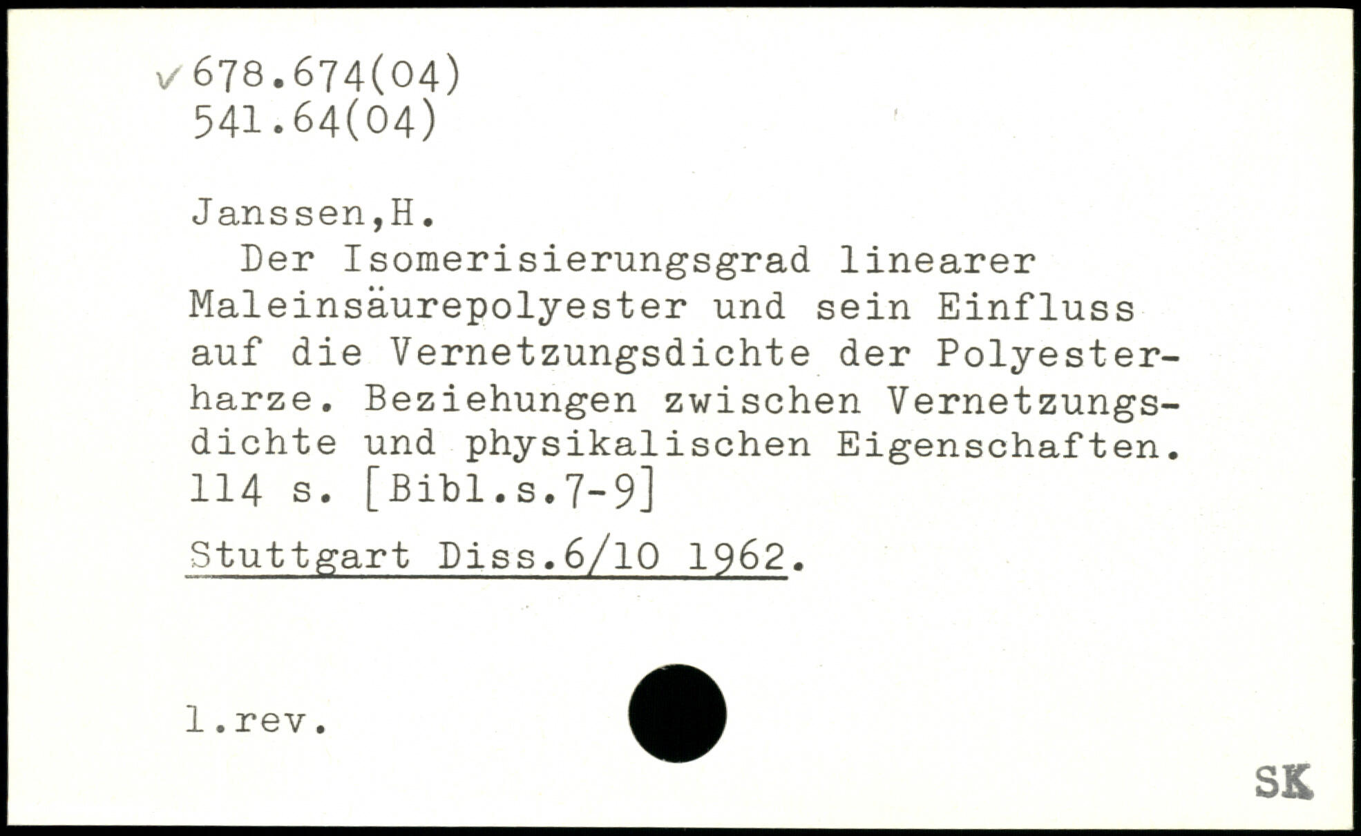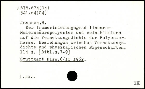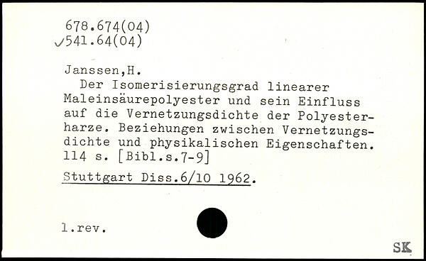 Der Isomerisierungsgrad linearer Maleinsäurepolyester und sein Einfluss auf die Vernetzungsdichte der Polyesterharze. Beziehungen zwischen Vernetzungsdichte und physikalischen Eigenschaften.