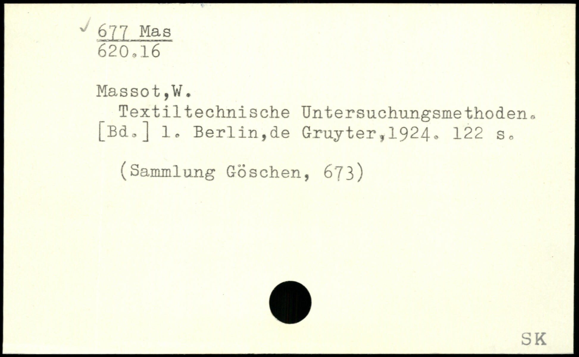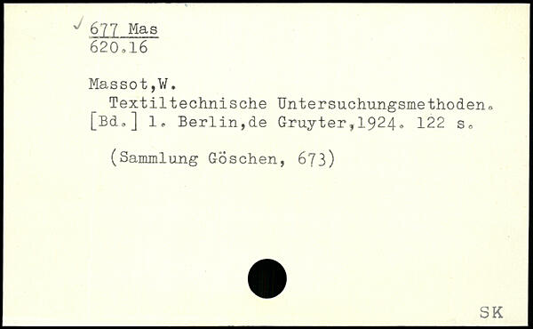 Textiltechnische Untersuchungsmethoden, [Bd,] 1, Berlin,de Gruyter,1924.