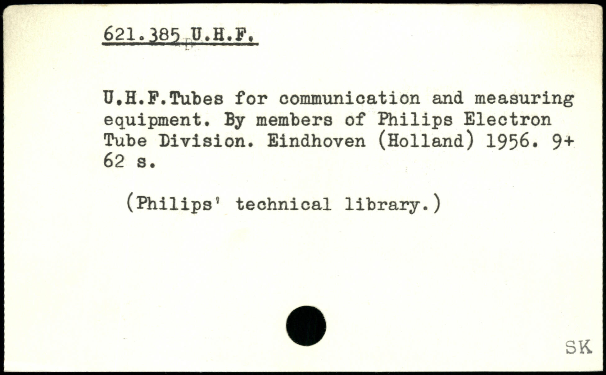 U.H.F.Tubes for communication and measuring equipment. By members of Philips Electron Tube Division. Eindhoven (Holland) 1956. 9+