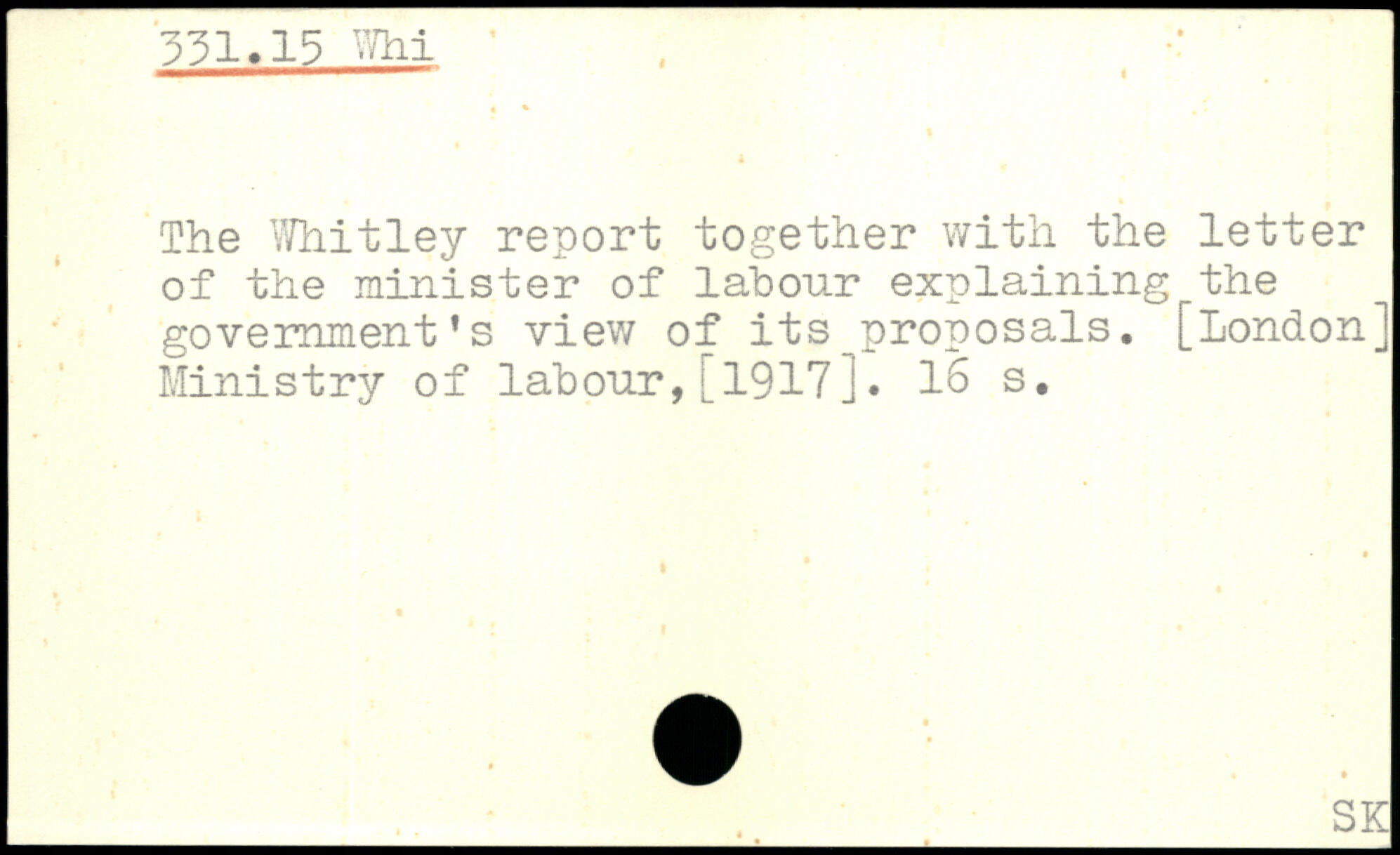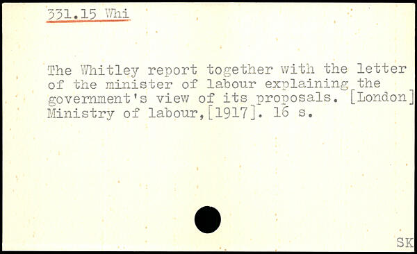 The Whitley report together with the letter of the minister of labour explaining the government’s view of its proposals. [London] Ministry of labour,[1917J. IS s.