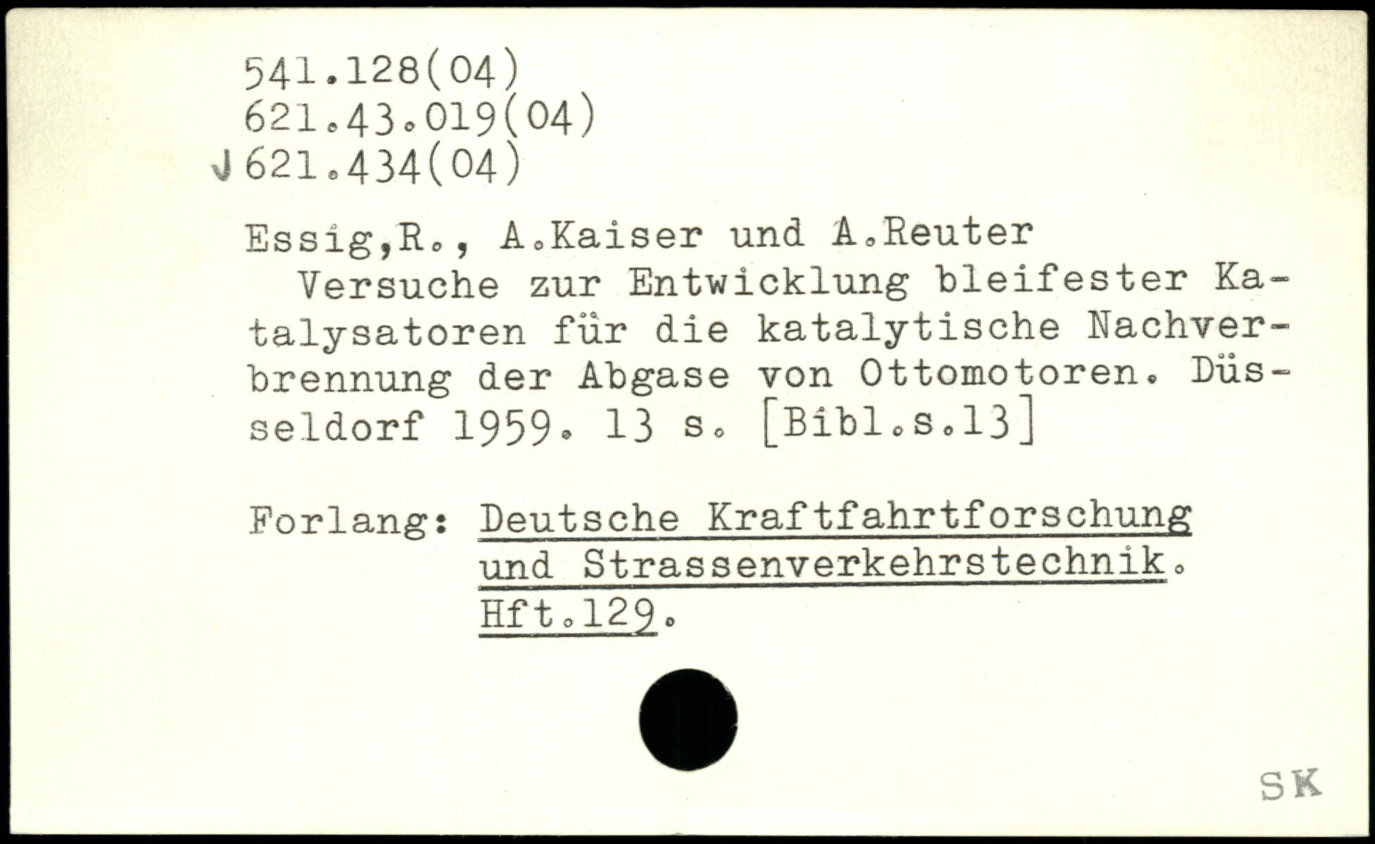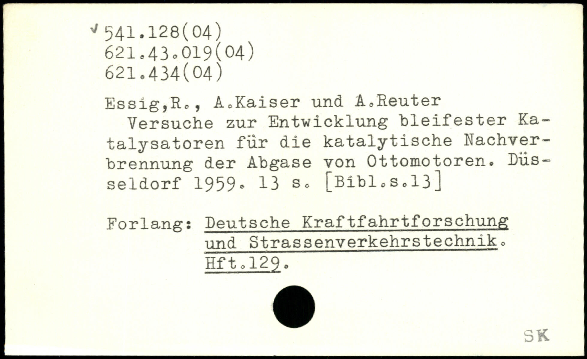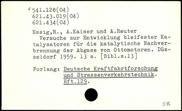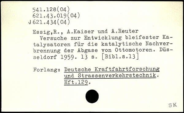 Versuche zur Entwicklung bleifester Katalysatoren für die katalytische Nachver-hrennung der Abgase von Ottomotoren. Düsseldorf 1959