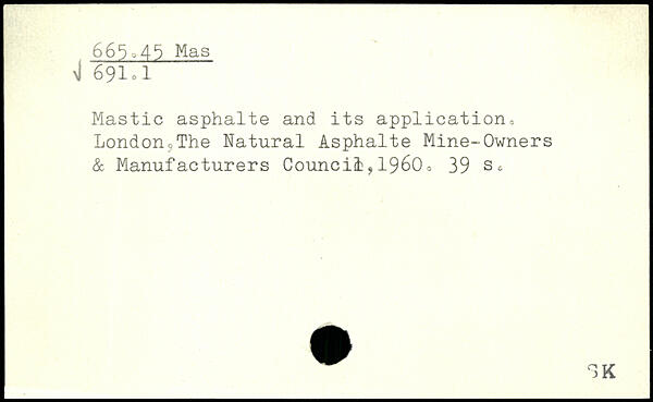 Mastic asphalte and its application, London,The Natural Asphalte Mine-Owners & Manufacturers Council,1960=