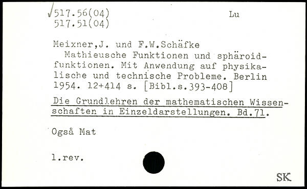 Mathieusche Funktionen und sphäroid-funktionen. Mit Anwendung auf physikalische und technische Probleme.