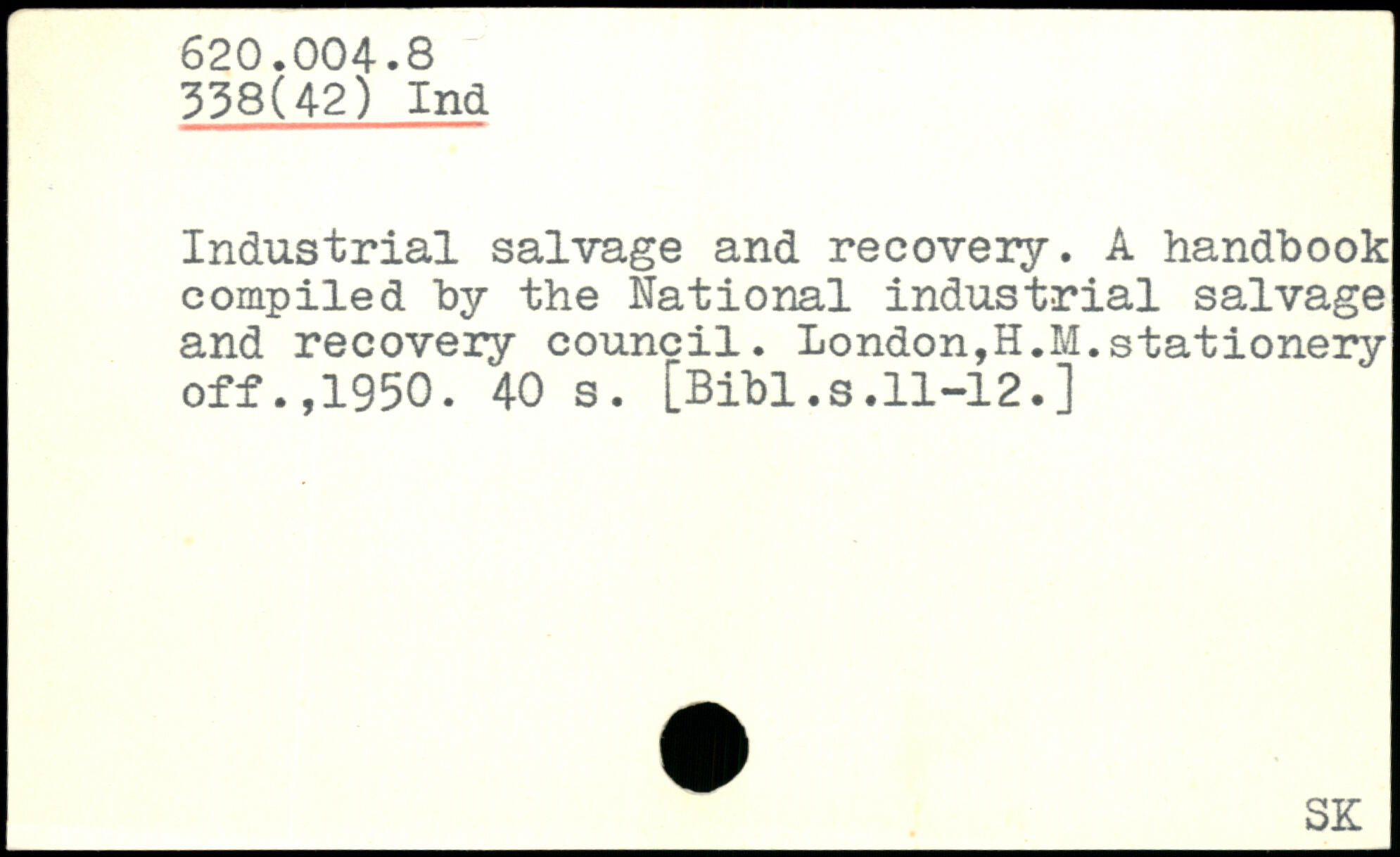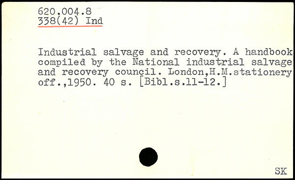 Industrial salvage and recovery. A handbook compiled by the National industrial salvage and recovery council. London,H.M.stationery off.,1950.