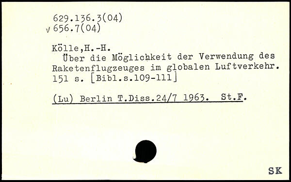 Über die Möglichkeit der Verwendung des Raketenflugzeuges im globalen Luftverkehr.