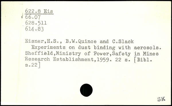 Experiments on dust binding with aerosols , Sheffield,Ministry of Power,Safety in Mines Research Establishment,1959.
