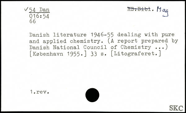 Danish literature 1946-55 dealing with pure and applied chemistry. (A report prepared by Danish National Council of Chemistry ...)