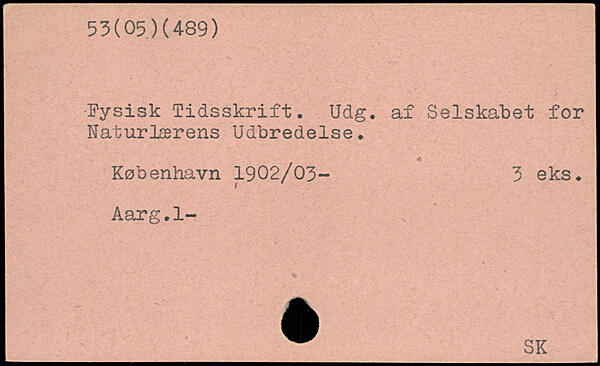 .Fysisk Tidsskrift. Udg. af Selskabet for Naturlærens Udbredelse.