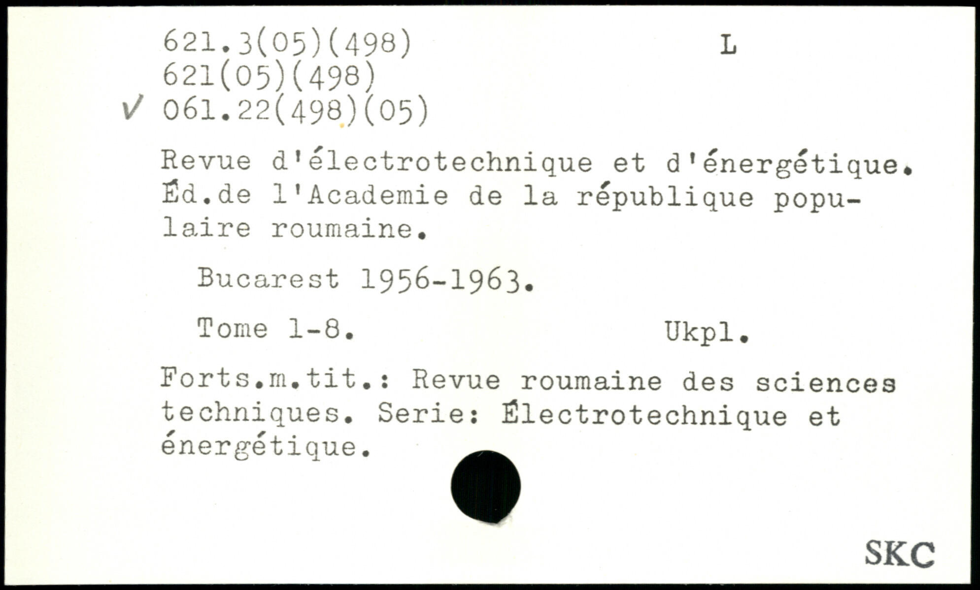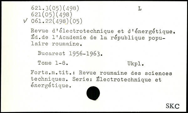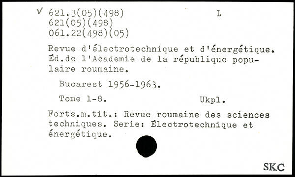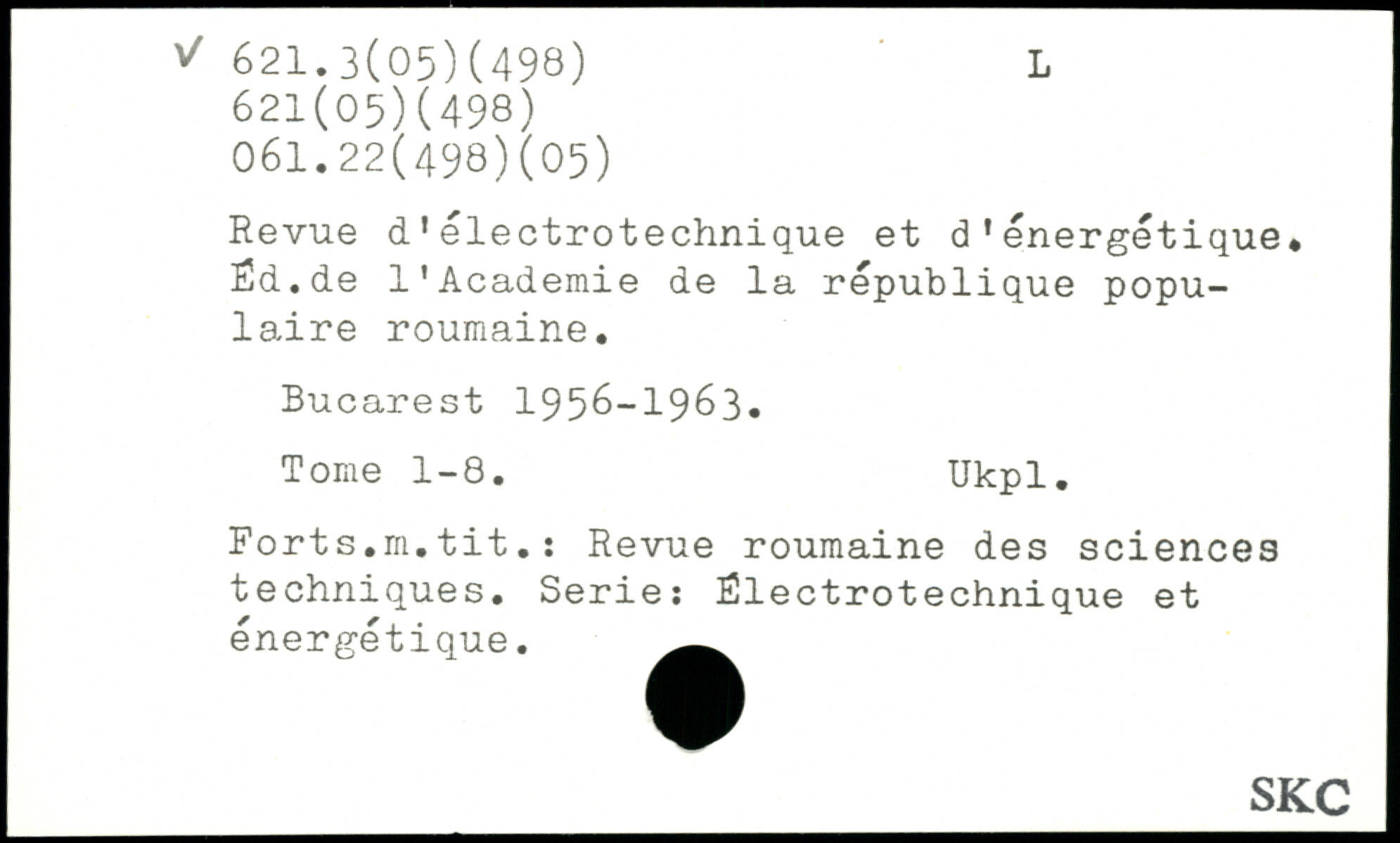 Revue d’électrotechnique et d’énergétique. Éd.de l'Academie de la république populaire roumaine.