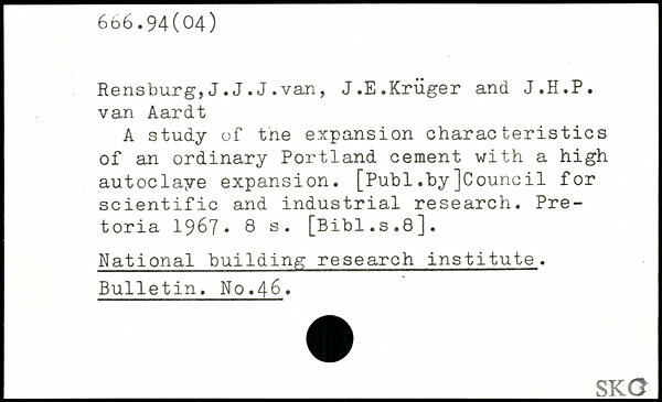 Rensburg,J.J.J.van, J.E.Kruger and J.H.P. van Aardt A study of the expansion characteristics of an ordinary Portland cement with a high autoclaye expansion.
