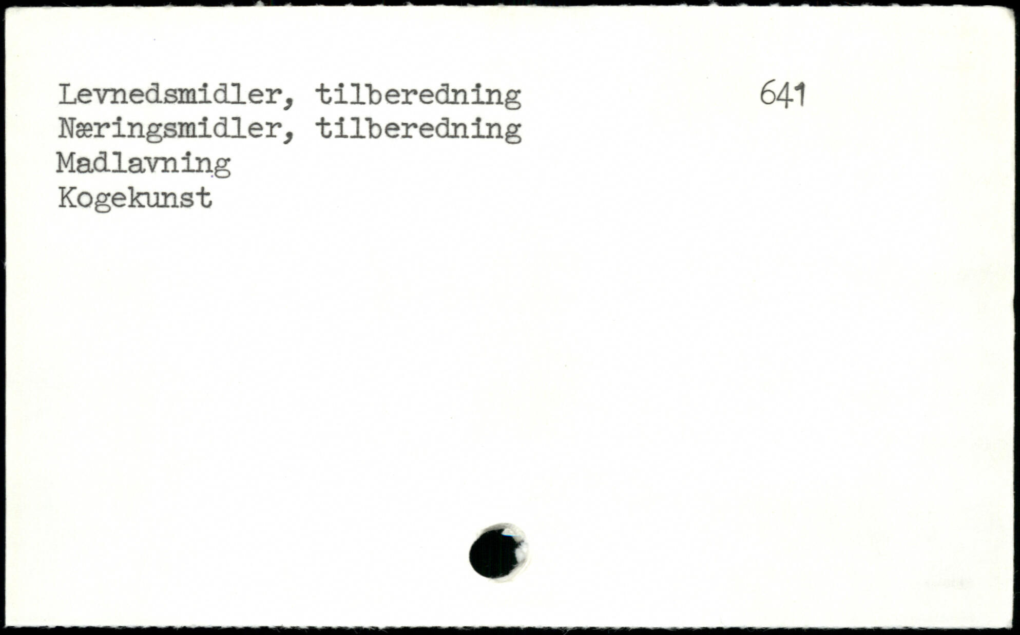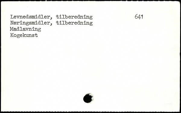 Levnedsmidler, tilberedning 641 Næringsmidler, tilberedning Madlavning Kogekunst
