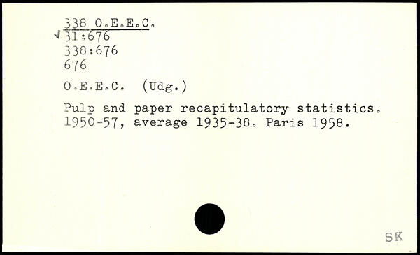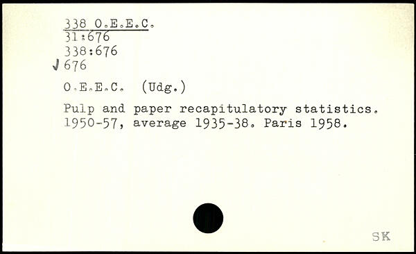 0,E,EoCo (Udg.) Pulp and paper recapitulatory statistics. 1950-57, average 1935-38