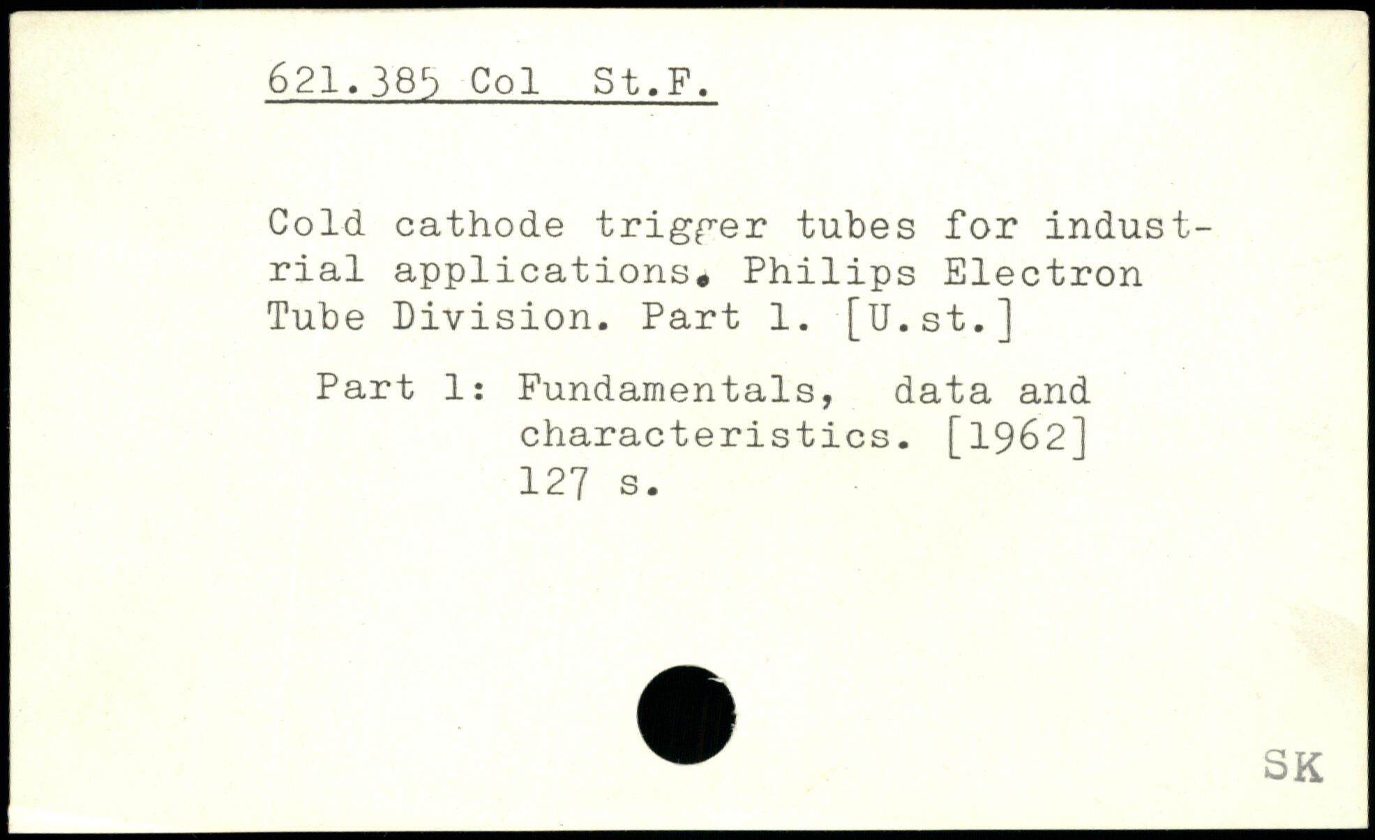 Cold cathode trigger tubes for industrial applications. Philips Electron Tube Division. Part 1. [U.st.] Part 1: Fundamentals, data and characteristics. [196 2]