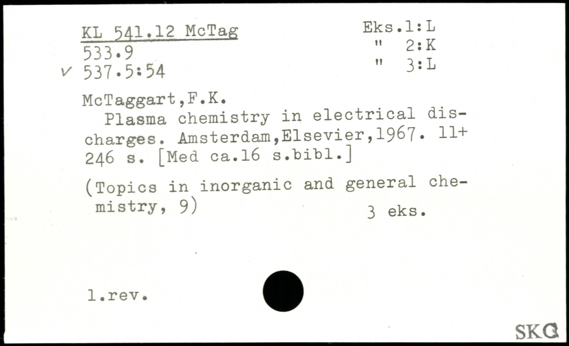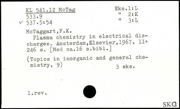 Plasma chemistry in electrical discharges. Amsterdam,Elsevier,19^7. 11+