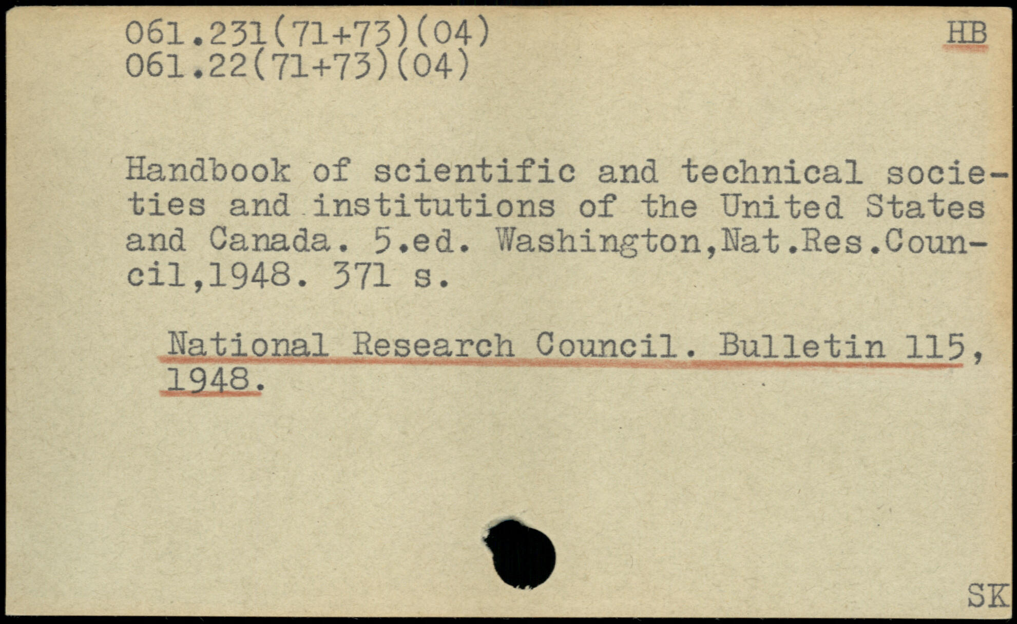 Handbook of scientific and technical societies and institutions of the United States and Canada. 5#ed. Washington,Hat.Res.Council, 1948.
