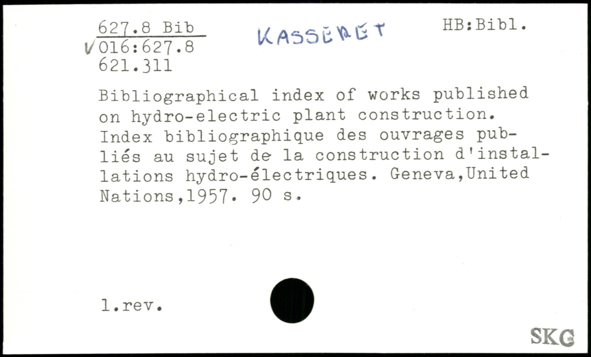 Bibliographical index of works published on hydro-electric plant construction. Index bibliographique des ouvrages publiés au sujet de la construction d'installations hydro-électriques.