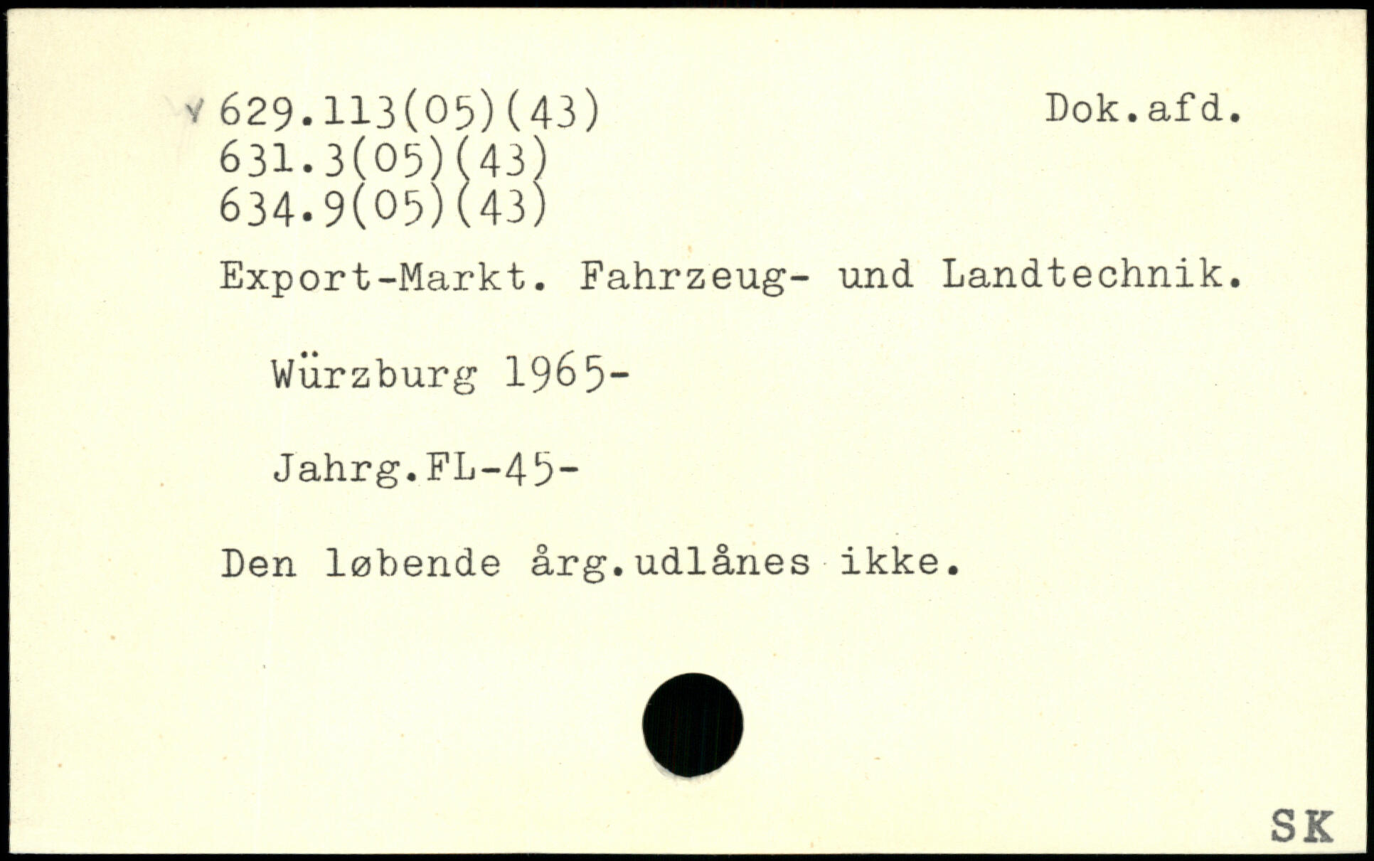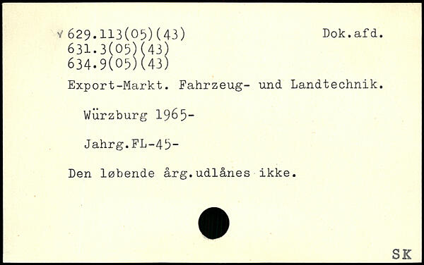 Export-Markt. Fahrzeug- und Landtechnik. Würzburg 1965“ Jahrg.FL-4b- Den løbende årg.udlånes ikke.