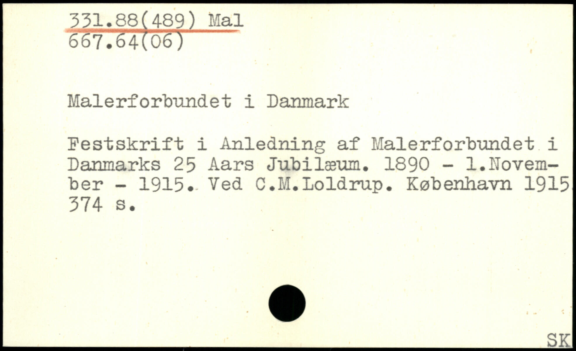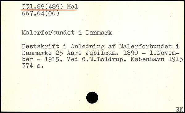Festskrift i Anledning af Malerforbundet i Danmarks 25 Aars Jubilæum, 1890 - 1,November - 1915. Ved C.M.Loldrup.