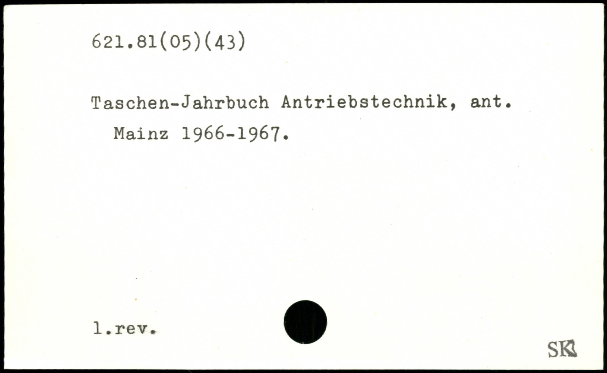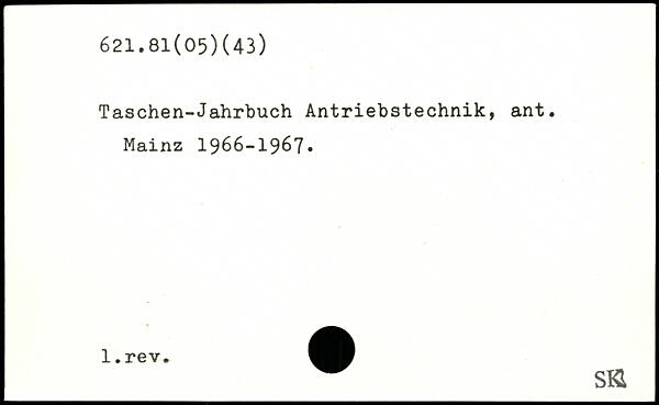Taschen-Jahrbuch Antriebstechnik, ant. Mainz 1966-1967. sa