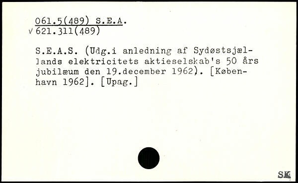 S.E.A.S. (Udg.i anledning af Sydøstsjæl-]ands elektricitets aktieselskab