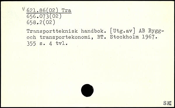Transportteknisk handbok. [Utg.av] AB Bygg-och transportekonomi, BT.