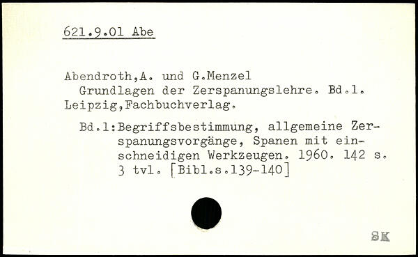 Abendroth,A, und G.Menzel Grundlagen der Zerspanungslehre, Bd.l. Leipzig.Fachbuchverlag, Bd,1:BegriffsbeStimmung, allgemeine
